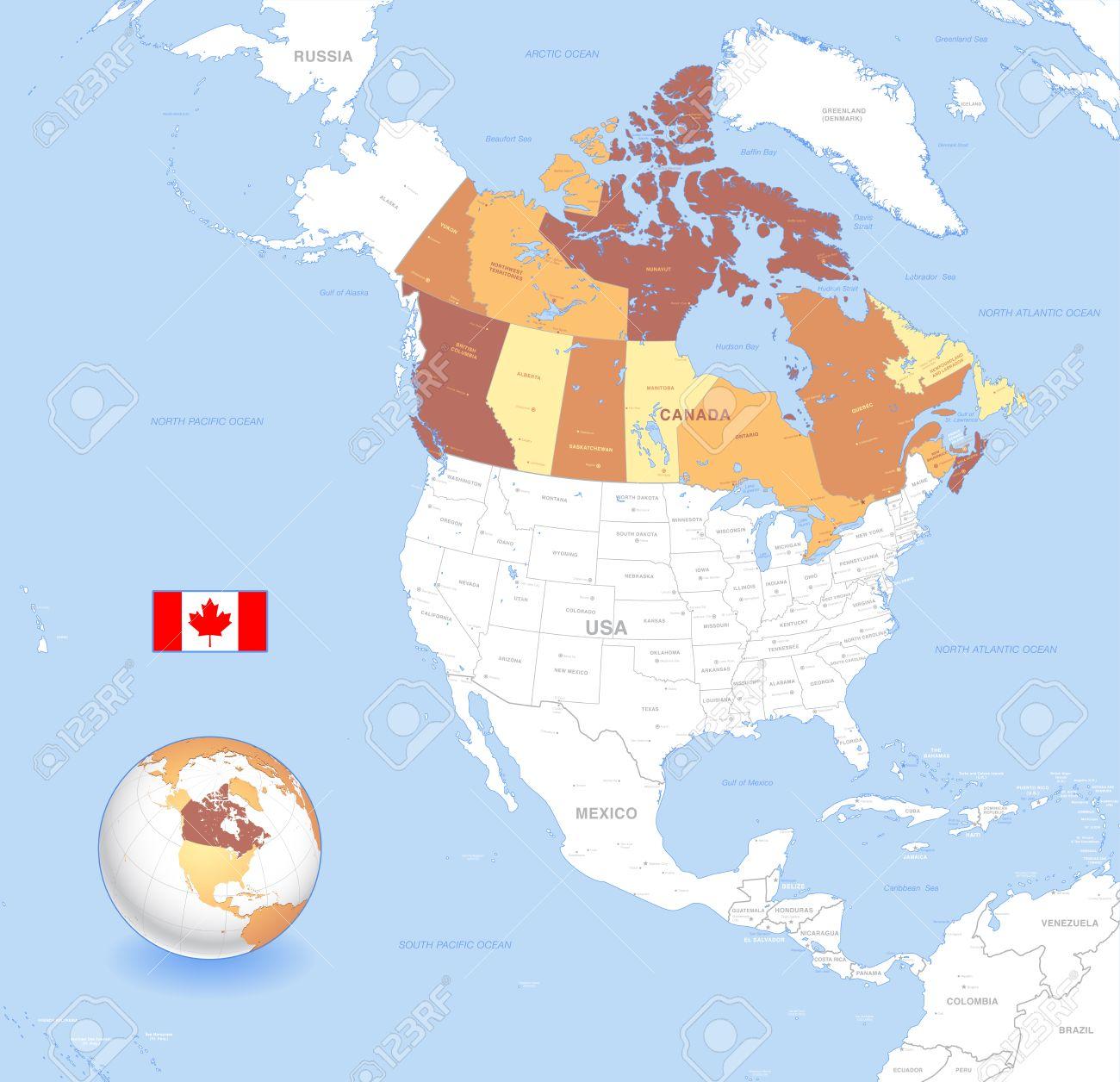 Kanada globus mapa. Atlas mapa Kanada (Ameryka Północna - Ameryka Południowa) do druku. Atlas mapa Kanada (Ameryka Północna - Ameryka Południowa) pobierz.